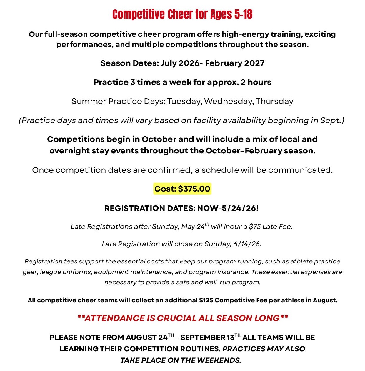 Competitive Cheerleading for Ages 5-18